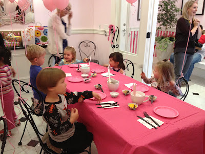 Ella had a super fun time decorating cupcakes at Cadence's 4th birthday party at Casey's Cupcakes! Well, she did less decorating and more eating. And then started eating spoonfuls of colored sugar- gross.