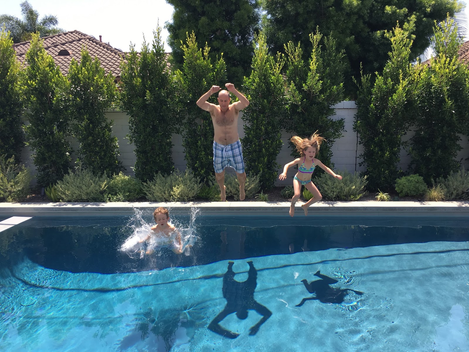 June 4, 2016 was the first day we were able to use the pool, so of course we had to take the same picture jumping in the pool one year later! Except this year, Everett joined in- he refused last year- he has become such a more confident swimmer!